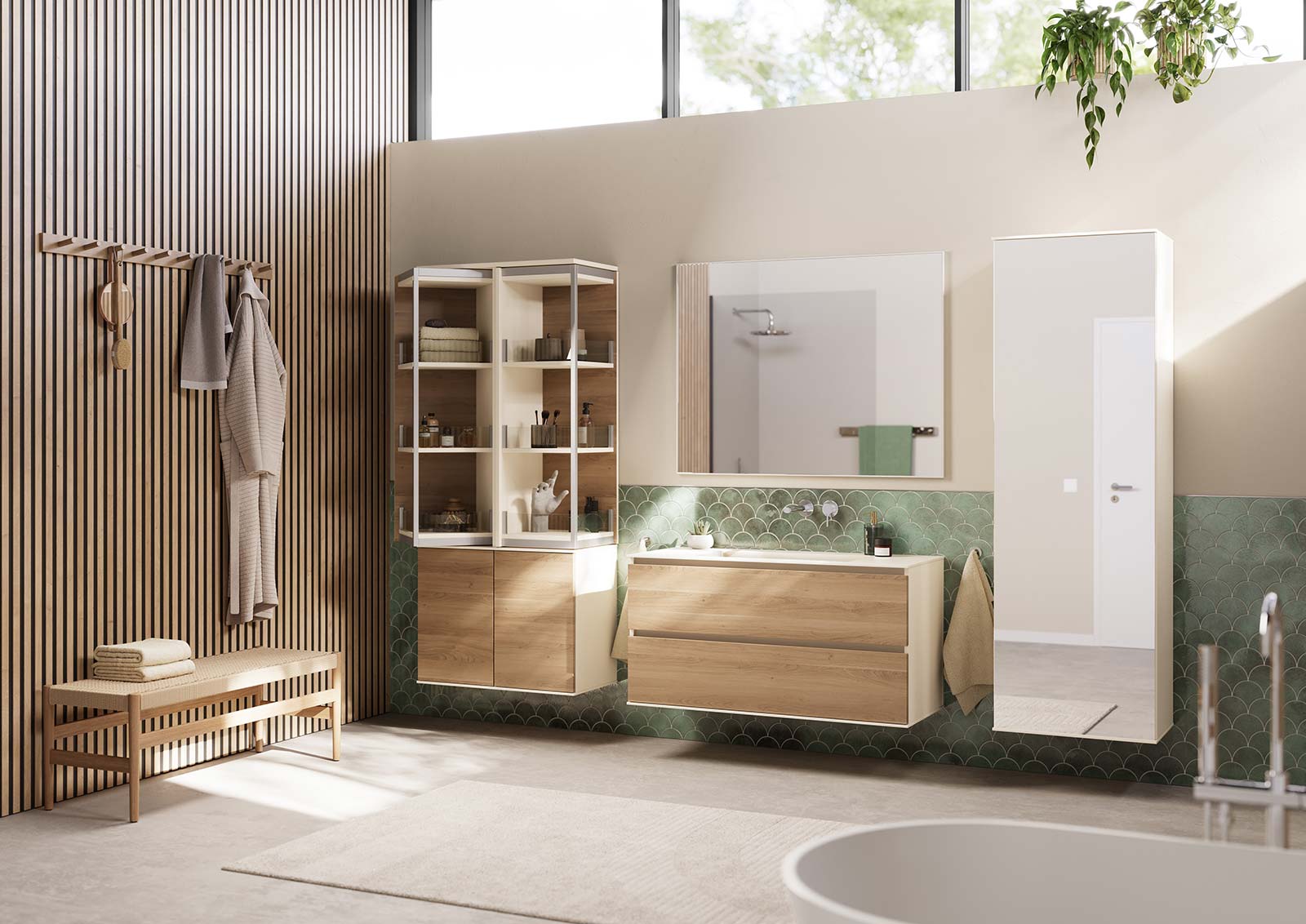 Einsatz KI-generierter Models zur Emotionalisierung der zuvor erstellten CGI-Raumszenen.